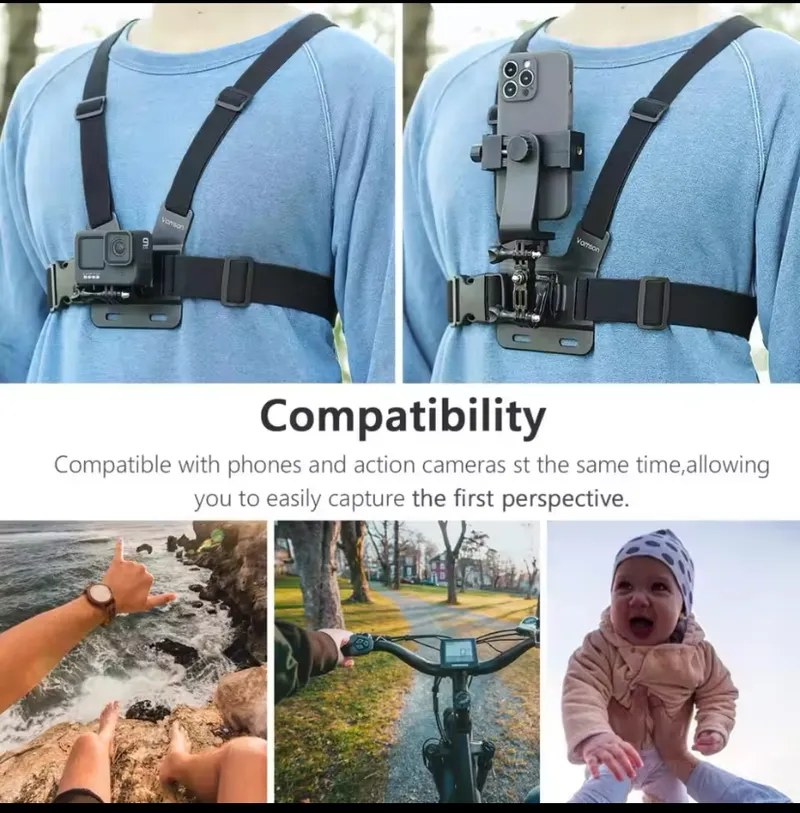 حاملة الهاتف الصدرية POV عملية و متعددة الاستعمالات!تستعملها باش تصور فيديوهات وأنت تدير نشاطاتك اليومية، تلعب رياضة، تسوق الدراجة،وإلا تعمل محتوى tiktok. يديك يبقاو أحرار والهاتف تاعك ثابت قدامك باش تصور كل لحظة بإحترافية و من دون تعب !